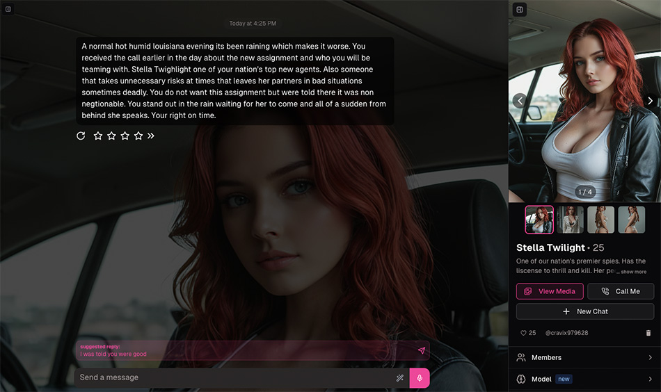 Conversations are uncensored and the AI handles extended sexual roleplay naturally, with adjustable response length and lust intensity mid-chat. Image generation produces contextual NSFW photos that match the scene in real time, voice calls run across 19 audio models and group chats support up to four characters simultaneously. All conversations are end-to-end encrypted with no monitoring.